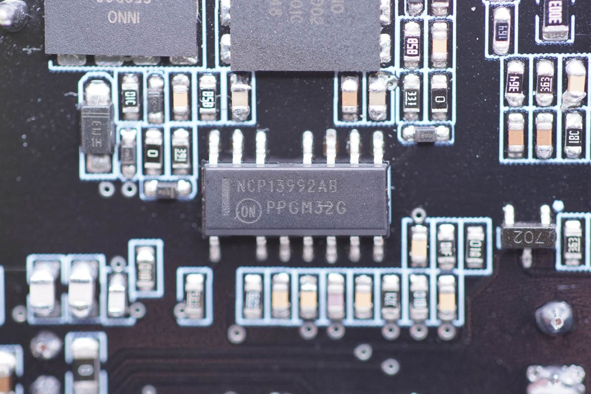 让我们从输入端开始。 PFC 升压控制器是安森美半导体 NCL2801,这是一款电流模式升压功率因数控制器,具有临界导通模式,支持 200W 功率。 谷值频率折返用于获得高能效和低待机功耗。
