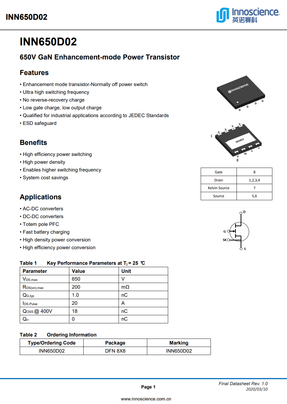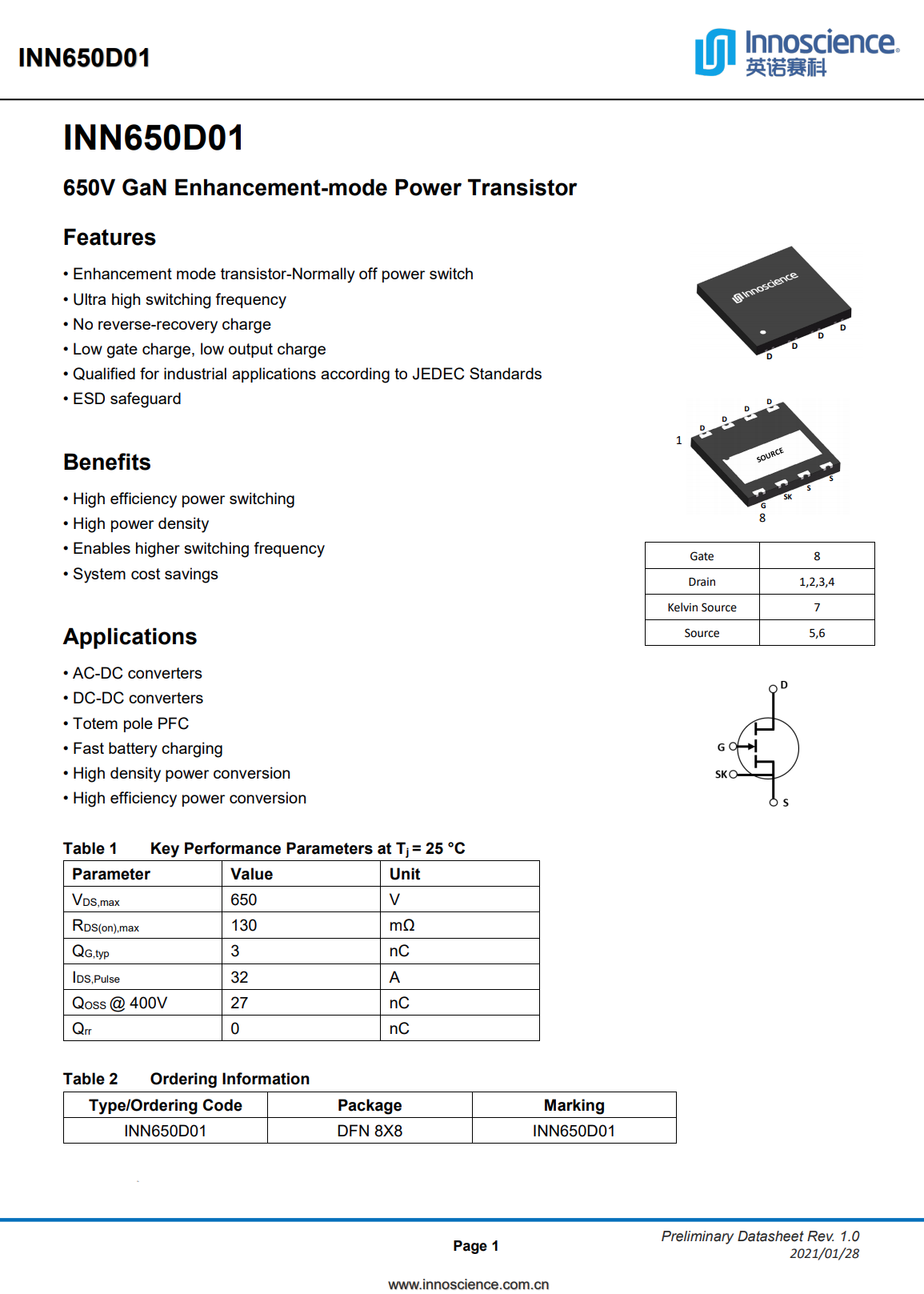 Innoscience INN650D01 的详细信息。