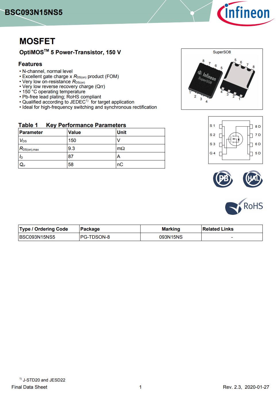 英飞凌 BSC093N15NS 的详细信息。