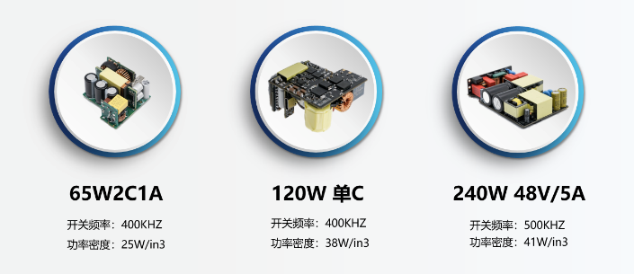 240W(PD3.1 48V5A)方案采用图腾柱无桥PFC+LLC设计,功率密度41W/in3,一张银行卡大小。
