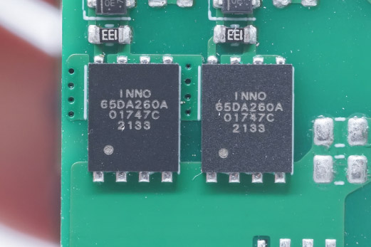 PFC 升压晶体管开关与两个 Innscience INN650DA260A 并联。