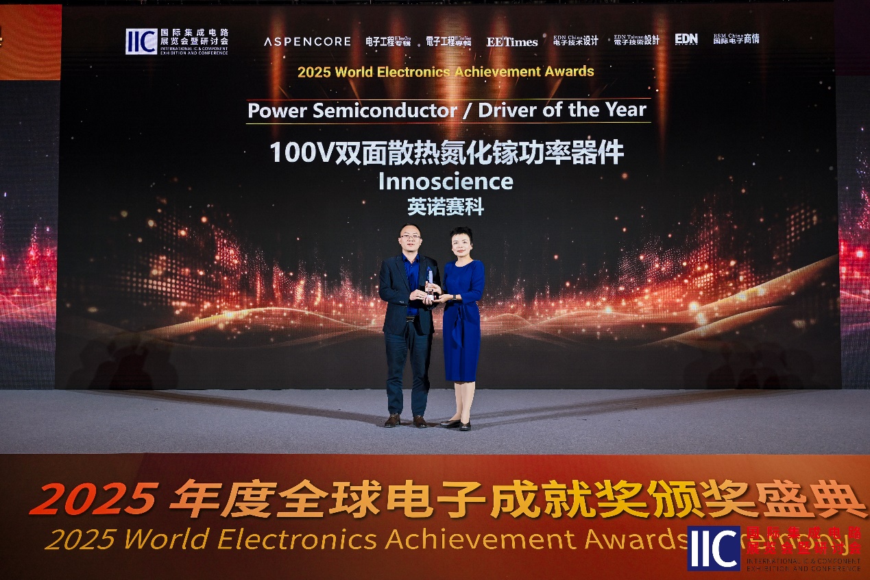 全球电子成就奖(World Electronics Achievement Awards)以其严格的评选标准和权威性享誉业界,旨在表彰在全球电子产业创新中做出杰出贡献的企业与产品。此次获奖,是行业对英诺赛科技术创新实力与产品卓越性能的再次肯定。