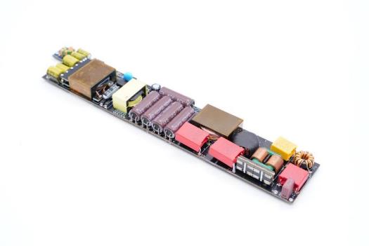 The PFC boost inductor, resonant inductor and transformer are placed in PCB via holes, which reduces product thickness. Power devices are welded, which ensures high space utilization.