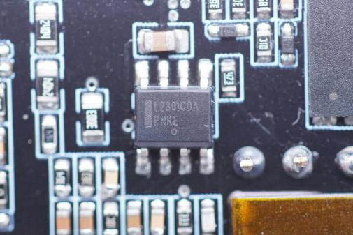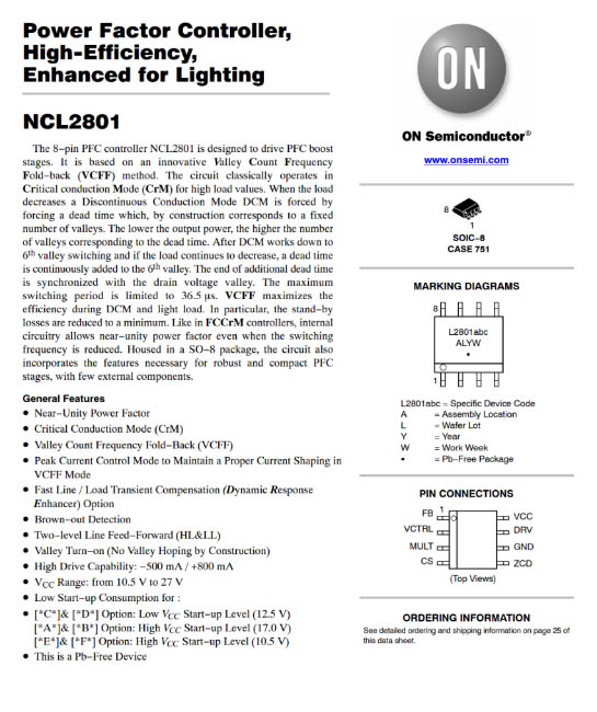 Let's start with the input end. The PFC boost controller is ON Semiconductor NCL2801, a current-mode boost power factor controller with critical conduction mode that supports 200W of power. The valley count frequency foldback is used to obtain high energy efficiency and low standby power consumption.