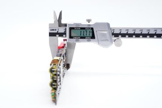 The thickness is about 11.7mm, a very slim design for a power supply. The calculated power density is about 2.5W/CC.