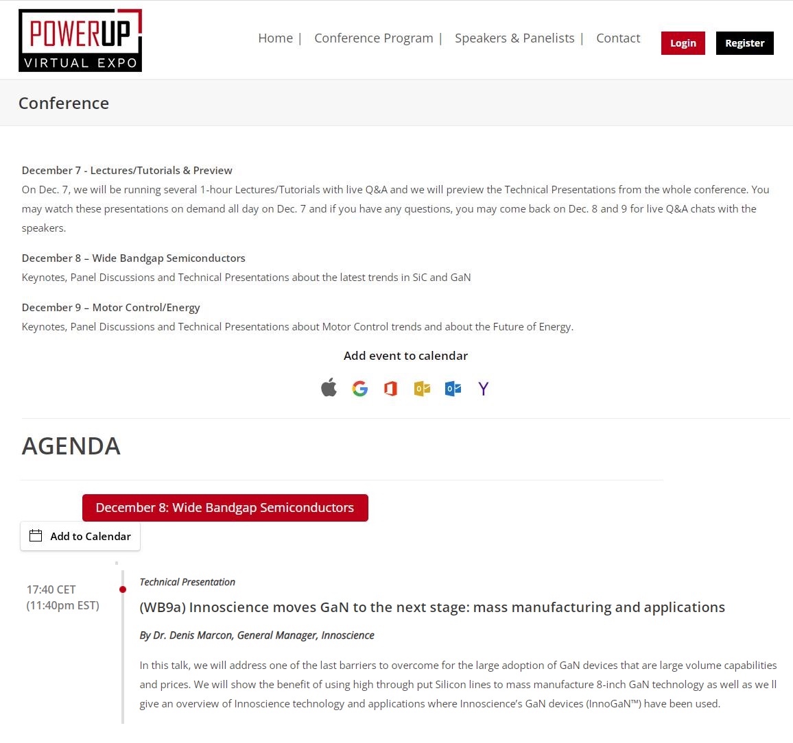In this talk, we address one of the last barriers to overcome for the large adoption of GaN devices that are large volume capabilities and prices. We show the benefit of using high through put Silicon lines to mass manufacture 8-inch GaN technology as well as we give an overview of Innoscience technology and applications where Innoscience’s GaN devices (InnoGaN™) have been used.