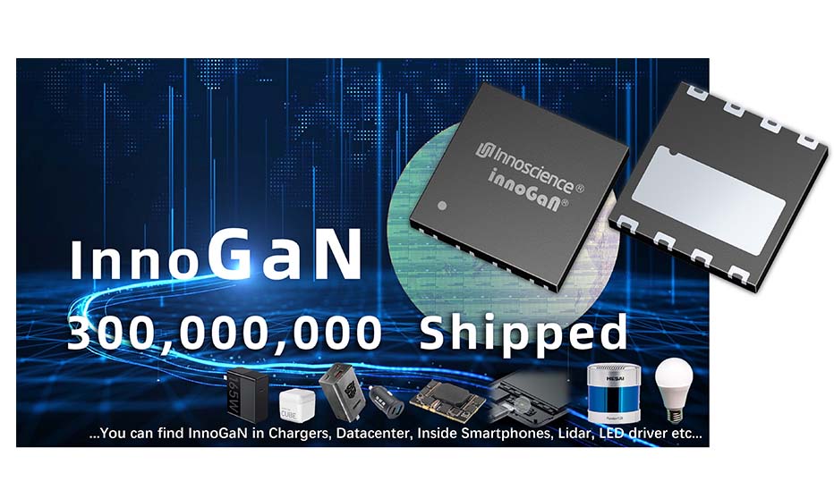 19 September 2023 – Innoscience Technology, the company founded to create a global energy ecosystem based on high-performance, low-cost, gallium-nitride-on-silicon (GaN-on-Si) power solutions, has shipped more than 300 million pieces of its InnoGan gallium nitride chips as of August 2023, helping customers achieve small size, high energy efficiency, and low loss product design.